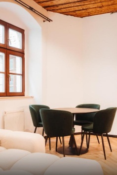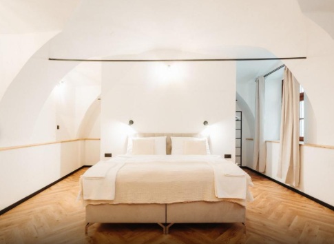 Moderné materiály a technológie sa tu spájajú s tradičným mestským domom v symbióze ktorá dáva tomuto apartmánu čaro a neopakovateľnú atmosféru.